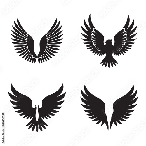 Bird wings silhouette set black color vector illustration
