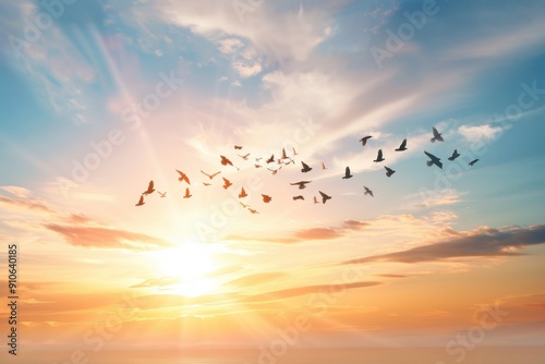 birds flying in the sunset