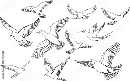 Birds in Flight Line Silhouettes