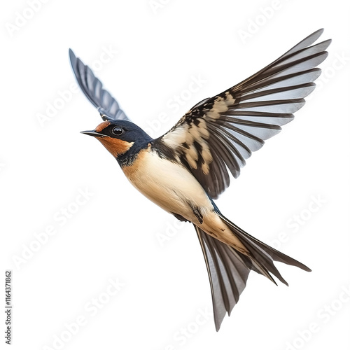 birds on a white background, swallow in flight towards the left on a white isolated background