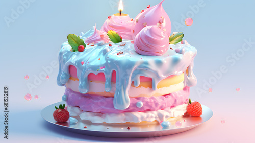 Birthday cake with in pink and blue pastel colors isolated on blue background