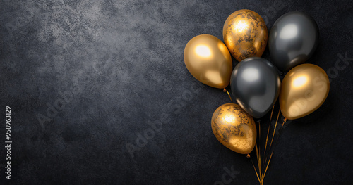 birthday party balloons, colourful balloons background and birthday cake with candles
