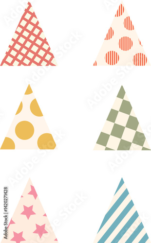 Birthday party hat set. Vector illustration set of cute doodle colored party hats for greeting card, sticker, design