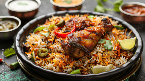 Biryani Plate Top Angle Vibrant Color. World Food Safety Day.