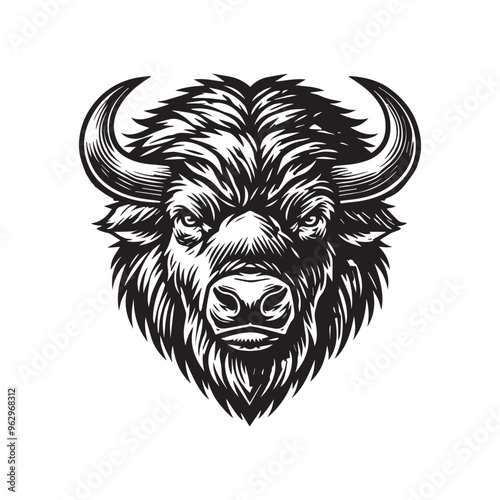 Bison Head Vector Art – Elegant Bison Black and White Clipart
