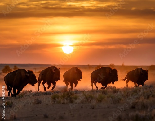 bison herd running dusty prairie sunset high resolution high details vibrant