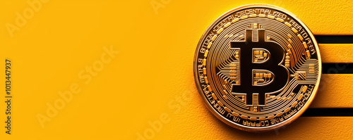 Bitcoin coin on a vibrant yellow background.