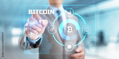Bitcoin cryptocurrency growth stock market trading financial technology concept.