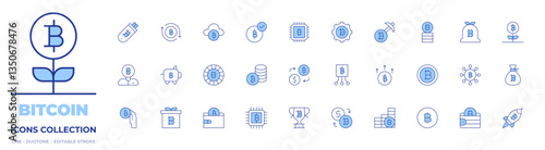 Bitcoin icons collection. Line Duotone style, editable stroke. usb flash drive, trophy, investor, chip, pay, money exchange, present, money bag, piggy bank