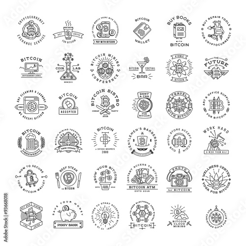 Bitcoin logo templates big set. Cryptocurrency badge collection