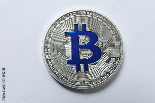 Bitcoin on a gray background, gold coin, cryptocurrency. Iron