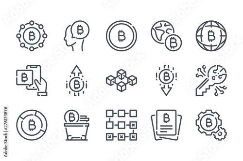 Bitcoin related line icon set. Cryptocurrency linear icons. Crypto money outline vector sign collection.