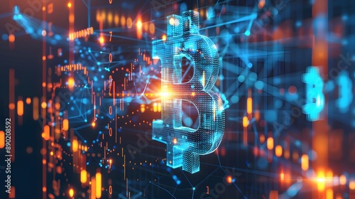 Bitcoin with glowing lights..Gold bitcoin symbol. Coins on black background.