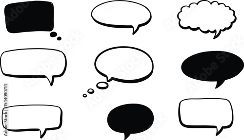 Black & White Hand-Drawn Doodle Speech and Thought Bubbles - AI Generative
