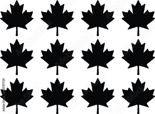 black 12 maple leaf icons set vector design