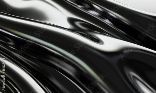 Black 3d render of holographic chrome futuristic device macro closeup of black silk displaying white iridescent holographic foil in style of black complex background