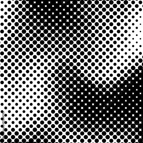 Black abstract background with black and white halftone texture, circles pattern for design concepts, banners, posters, wallpapers, web, presentations and prints. Vector illustration.