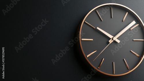 Black And Gold Modern Wall Clock On A Dark Textured Background