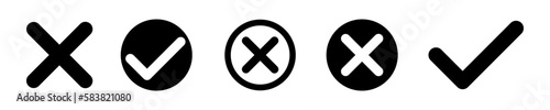 Black and red cross vector illustration set. Negativ sign. Checklist mark icon.