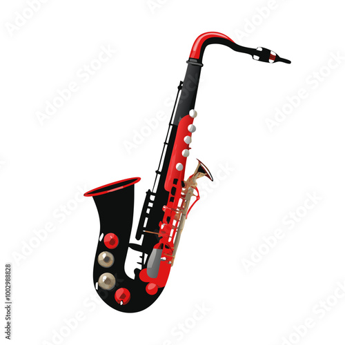 Black and red saxophone isolated on white background