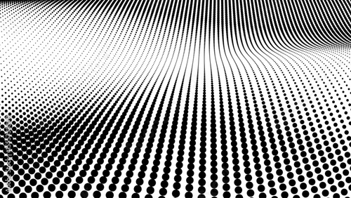 Black and white abstract halftone vector background with dot gradient. Wavy line grid texture. Modern geometric pattern for wallpaper.