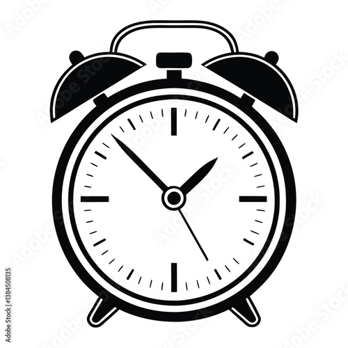 Black and White Alarm Clock Minimal Icon for Use in Apps