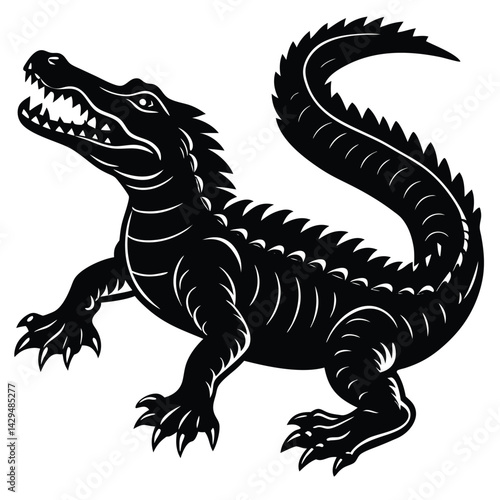 Black and White Alligator Vector – Aggressive Stylized Reptile Design