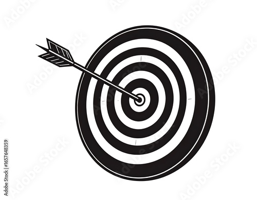 Black and White Arrow Hits Bullseye on Circular Target Board.