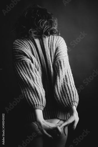 Black and white art fashion surrealistic portrait of beautiful woman, fashion studio portrait of beautiful model, details of body