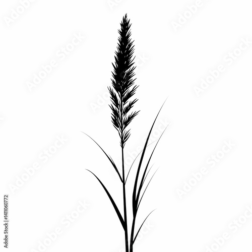 Black and White Botanical Plant Silhouette. Ornamental Grass in Fine Art Illustration for Ecological Landscape Design and Home Decor