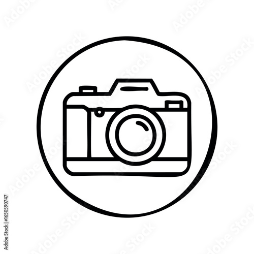 Black and white camera icon in circular border