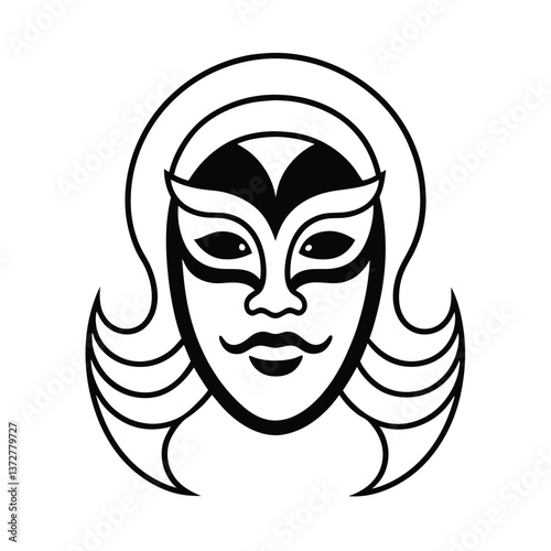 Black and White Carnival Mask Vector Illustration with Theatrical and Masquerade Elements