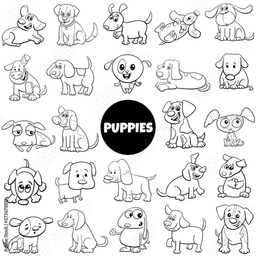 black and white cartoon puppy dog characters big set