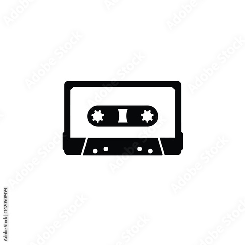 Black And White Cassette Tape Vector Illustration Audio Recording Icon
