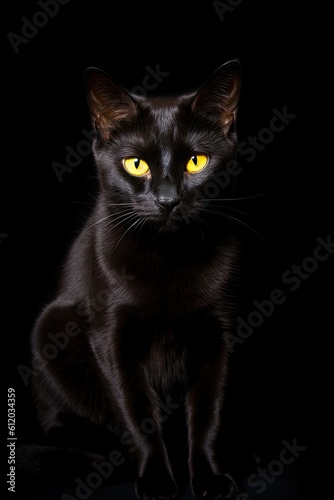 Black and white cat portrait. AI generated art illustration.