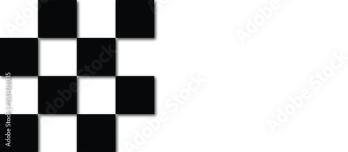 black and white checkered square illustration, chess board square grid paper craft style papercut cutout vector background, chess backdrop with copyspace place for text, Horizontal banner header chess