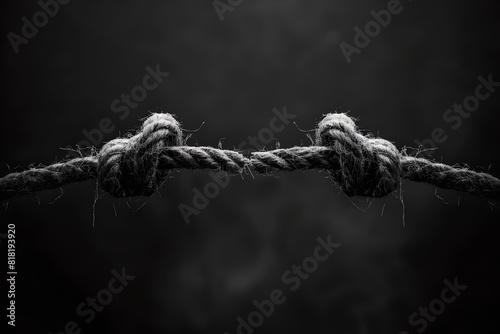 Black and white close-up of two ropes tied in knots. Symbolizes connection and strength. Ideal for metaphorical and conceptual artworks, educational materials, and motivational content. Generative AI