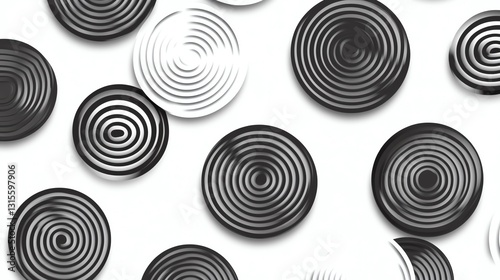 Black and White Concentric Circles Create a Modern Design on a Plain Background