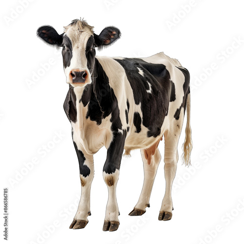 Black and white Cow standing isolated on transparent background cut out png