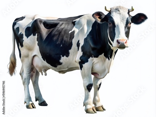 Black and White Dairy Cow Aerial Photo, Isolated Cow, High-Angle Cow Image, Farm Animal Photography