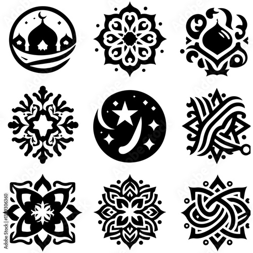 Black and white distinguished set of floral mandala expressing abstract ornamental beauty and elegant artistry
