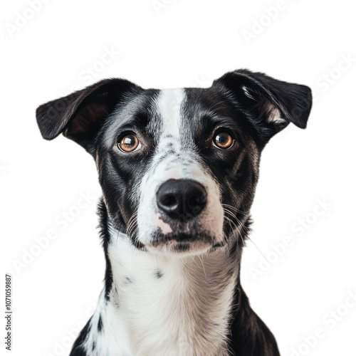 Black and White Dog Portrait on Isolated Background