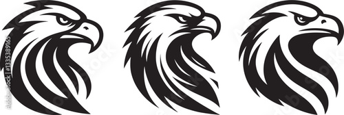Black and White Eagle Head Logo Pack – Silhouette Vector Illustrations on White Background
