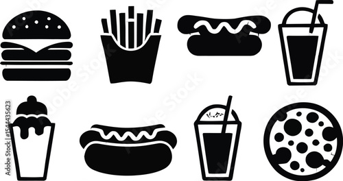 Black and white fast food icons arranged on a textured background art