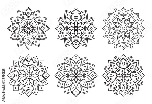 Black and White Floral Mandala Patterns for Digital and Print Use