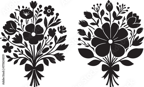 Black and white flower bouquet vector illustration - floral design elements eps silhouette