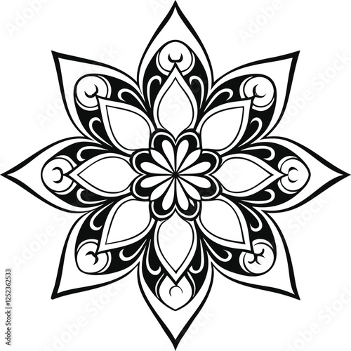 black and white flower type mandala