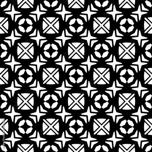 Black and white geometric seamless pattern with abstact shapes. Repeat pattern for fashion, textile design, on wall paper, wrapping paper, fabrics and home decor.
