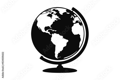 Black and White Globe Illustrating America and Africa with Simple Stylized Design