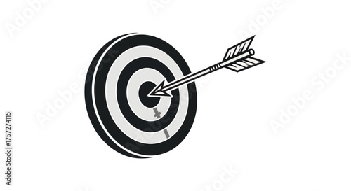 Black and white graphic of an arrow striking the bullseye, symbolizing success and precision.